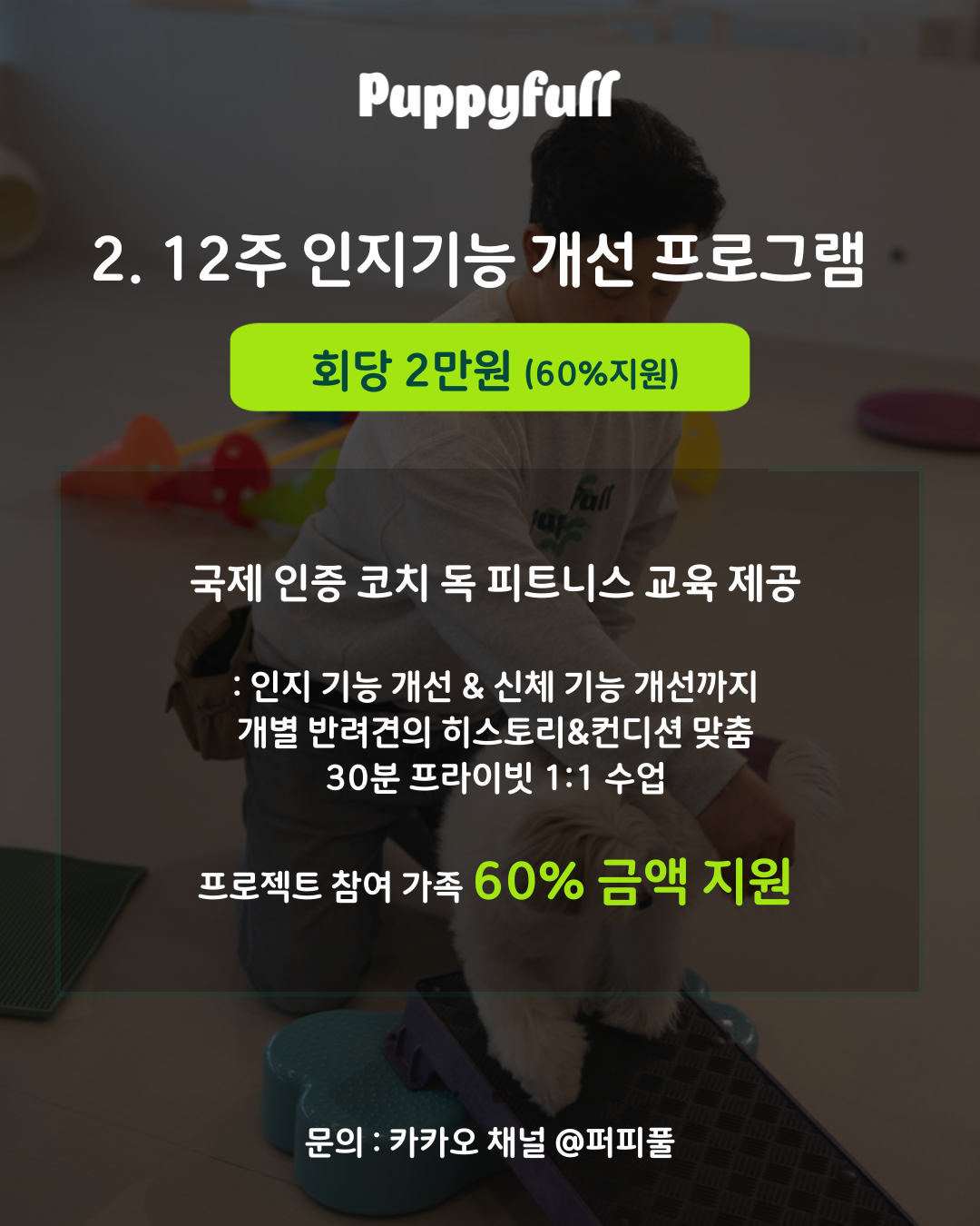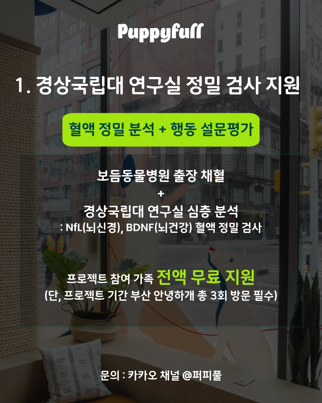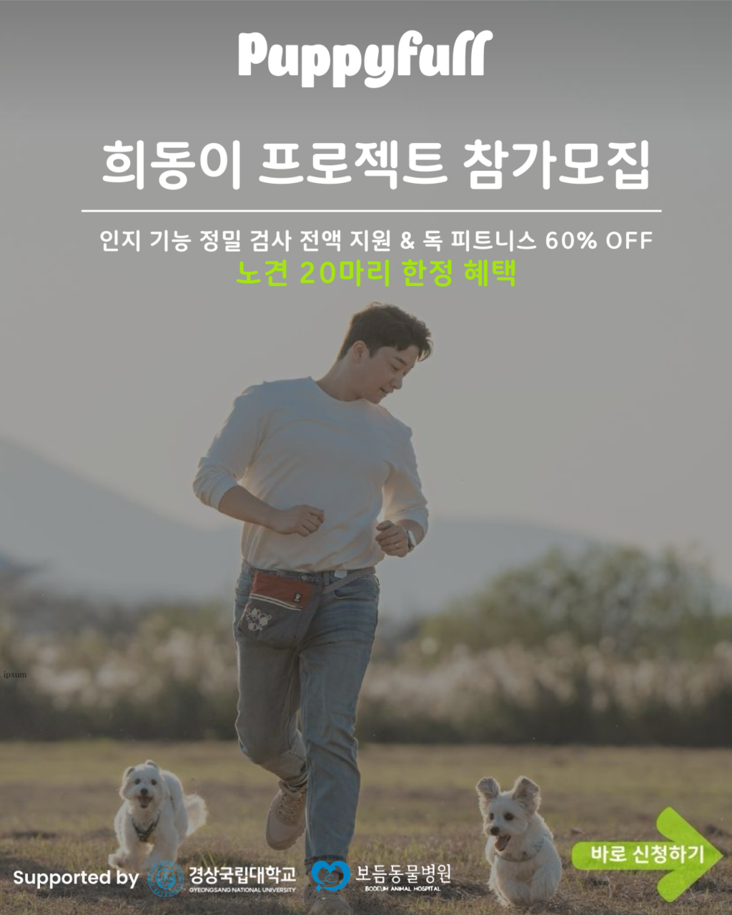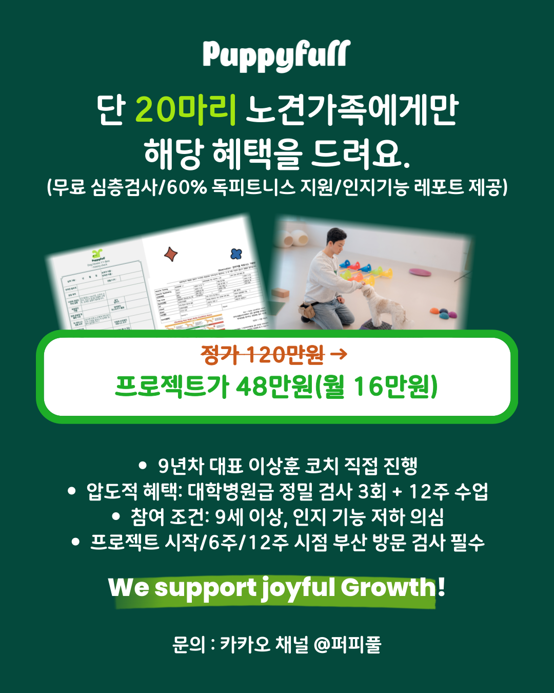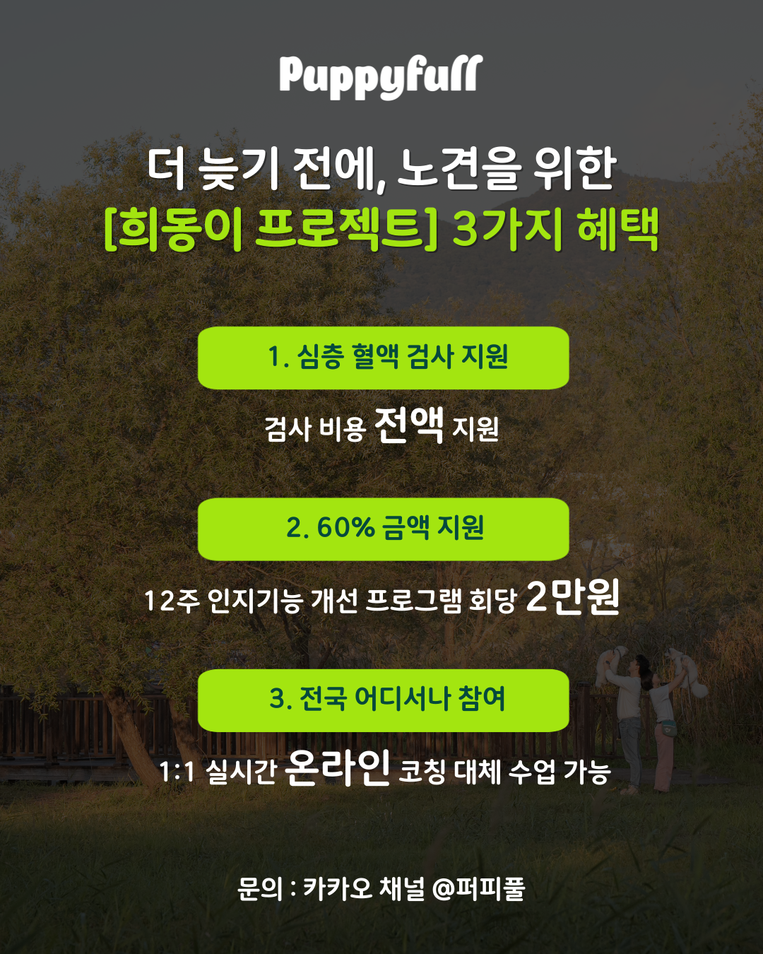 참여 조건: 9세 이상, 인지기능 저하(치매)가 의심되는 반려견 가족