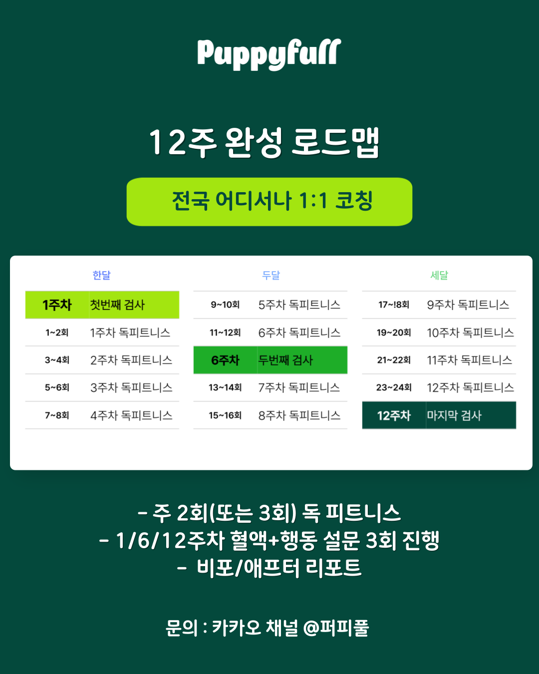 📍 최소한의 방문: 12주간 딱 3번(시작, 6주, 12주)만 부산 '안녕하개'에 방문하시면 모든 정밀 검사 혜택을 누리실 수 있습니다.